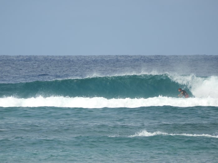 昨日よりサイズダウンの1-2' 午後からは徐々に風が強くなって来てます。 明日からも強いENE Tradeが続く予報です。