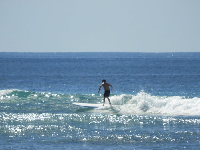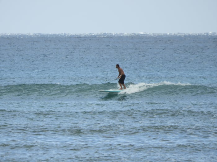 今日は久々に弱めのオフショア。 太陽も朝から燦々!! 波は膝腰ですが(^ ^)