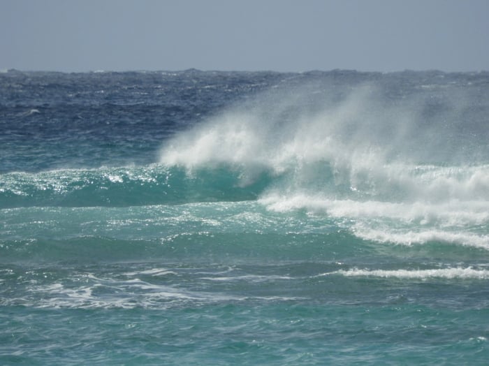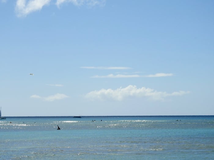 うす曇りの朝。 午後には強い日差しが戻って来ました。 ビーチも海も空いてます。
