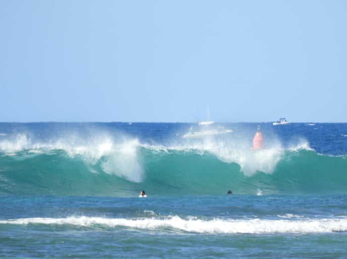 今日も引き続き、ノースとウエストにHigh Surf Warning サウスもラップでサイズ上がっています!! 風は強めのトレード。 週末なので、ずっと混雑 (^ ^)