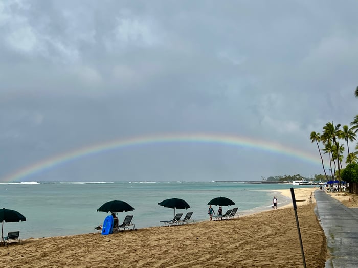 シャワーの合間のレインボー!! 今日はシャワーが降ったり止んだり。 太陽が出て来るまで ちょっと肌寒いです。 でも、レインボーもよく出ていました。