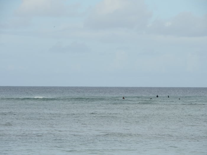 波は昨日より下がって、 波待ちも長し。 人影まばら (^ ^) スプリングブレイクも終わって ビーチもちょっと静かになって来てます。