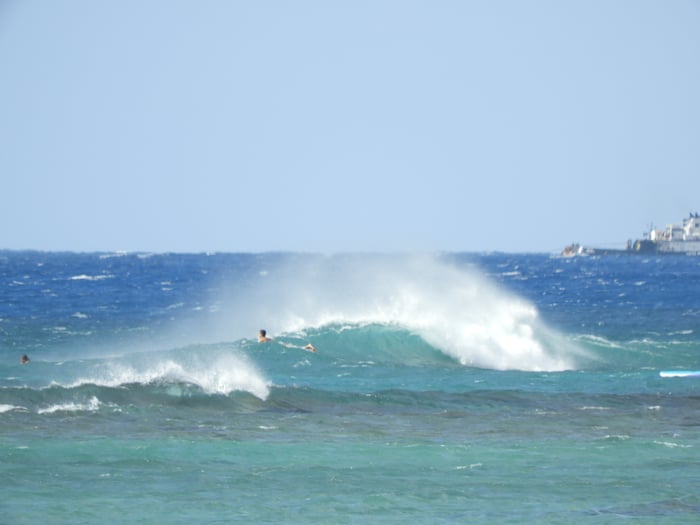 週末にはトレードが戻って来そうですが 今日は南東のムシっとした風。 波はパラダイスは肩ぐらいありました。 明日はコナの予報( - - ;)