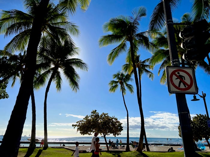 そろそろ、11月も終わり。 午前中はちょっとひんやり、 雲の多い時間も。 連休中とあって、ワイキキは結構な賑わいです。