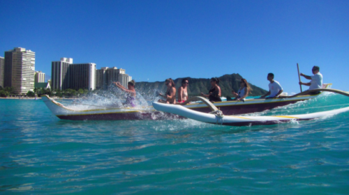 ロイヤルハワイアンホテル前のビーチで、カヌーのフリーライドや、