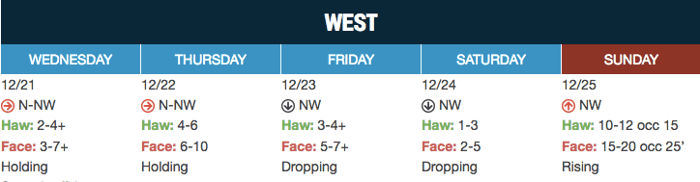 そのクリスマスですが、ノースとウエストに大きなスウェルが来そうですよ(^O^)