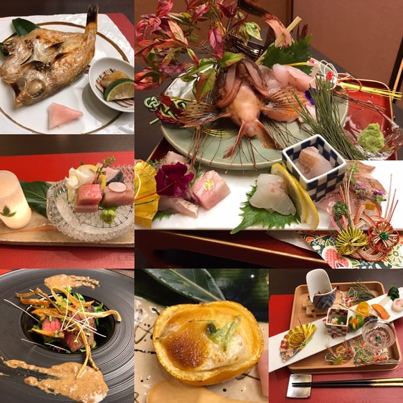 海の幸、山の幸の料理。
