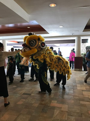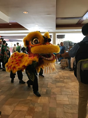 02/04/2017 ライオンダンス 朝からKONAです。 オンショアで生温い湿気のある天気。 ダイヤモンドへッドも今日は白く霞んで見えます。 お隣のリーフホテルでチャイニーズニューイヤーのライオンダンス。 鐘と太鼓の大きな音が鳴り響いて、 獅子がやって来ます。 みんな、お金の入った赤い封筒を口に入れいきます。 各ショップの入口にも赤い封筒を貼って獅子が来るのを待ちます。 商売繁盛を祈って盛大に獅子が舞いますが とにかく賑やかです(^O^) この時期、ハワイのいろんな場所で見る事が出来ますよ。 tagPlaceholderカテゴリ: feb2017