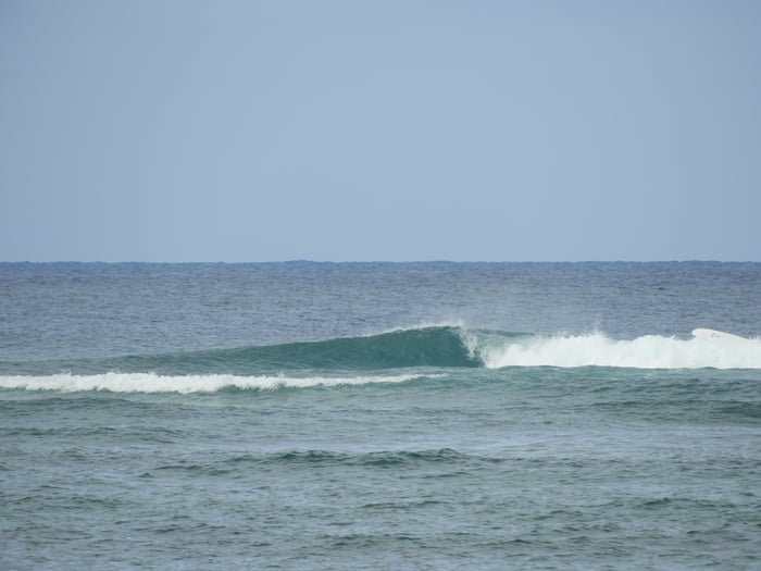 週末で混んでいましたが、まだ風も弱くFun Waves.
