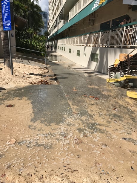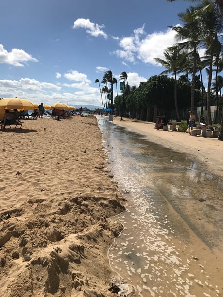 今日の時点でもまだ満潮前にこれだけ水が流れて来ています。