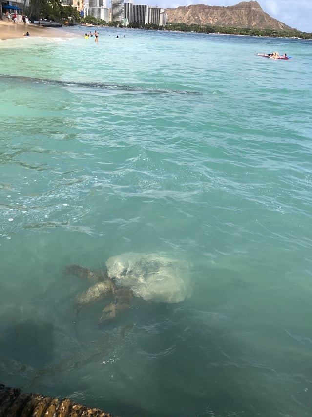 亀がビーチのすぐ近くまで来ていたので、みんな撮影に夢中。