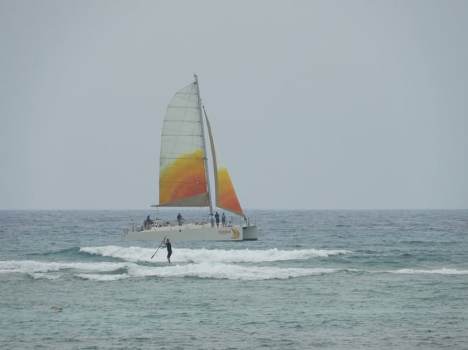 今日は朝からオンショアの曇り空 (T T)
