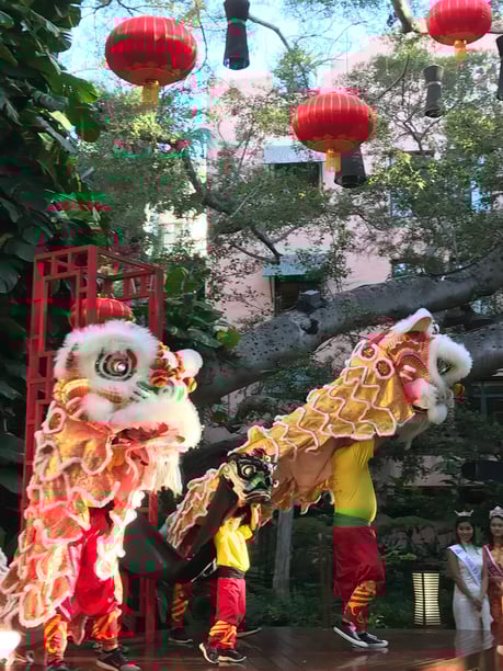 太鼓や鐘の音に爆竹、そしてライオンダンス。