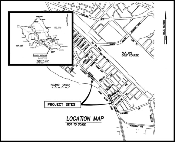 カラカウア通りのサイドウォークのリノベーション工事がスタートしてます。