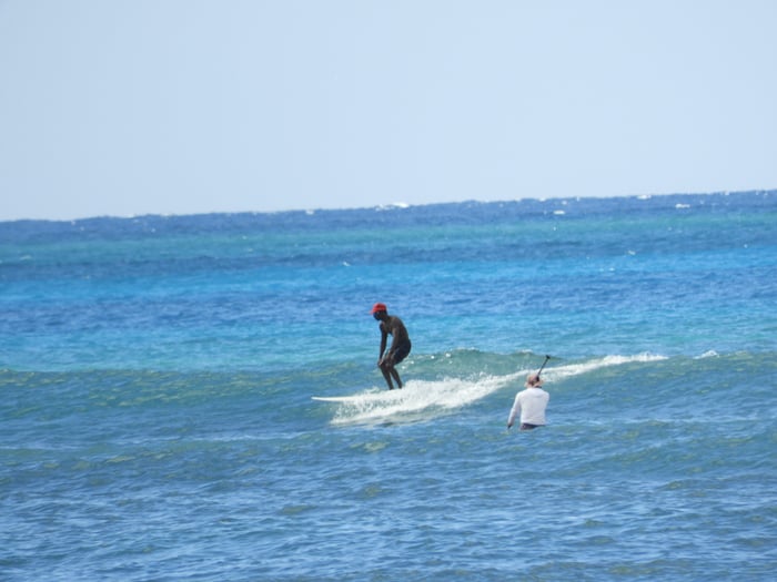 波は小さいですが、最近の中では風がマシ。
