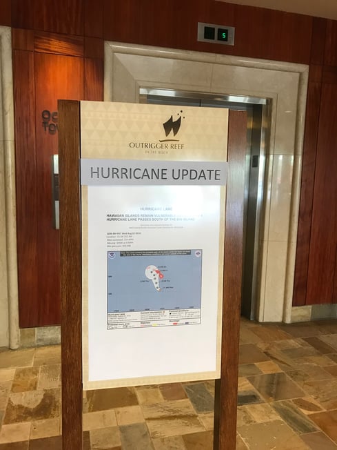 ホテルの中にはHurricane Updateが出ていたり、
