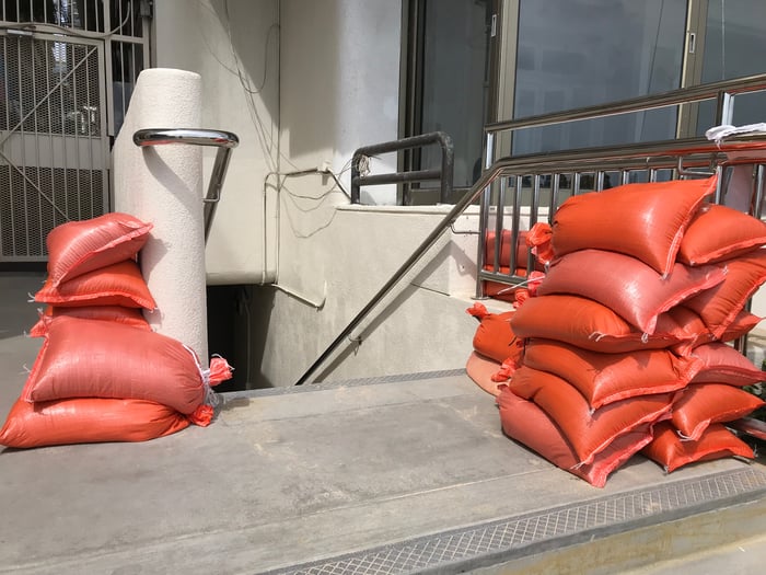 サンドバッグの準備がされています。