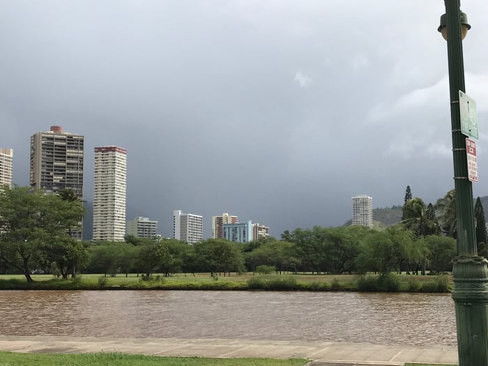 最近の雨で、アラワイの水がまっ茶色(@ @)