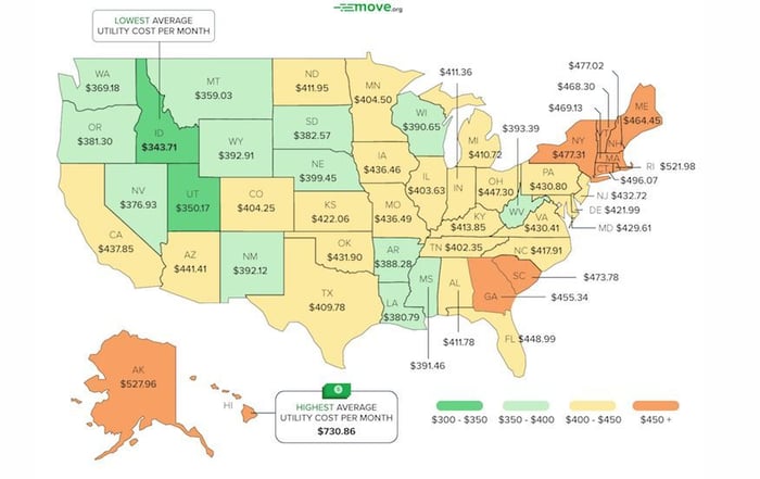 ひと月のユーティリティコストが高い州だそう。