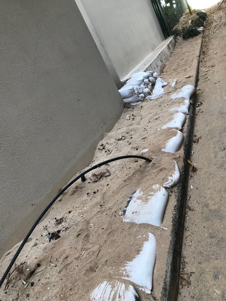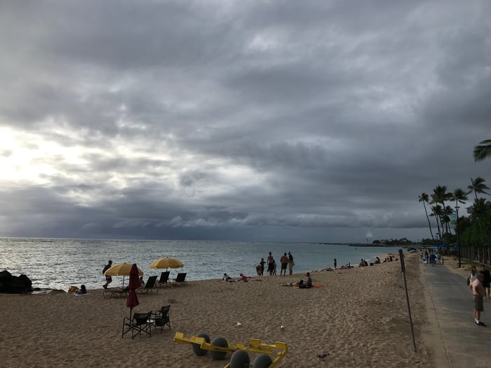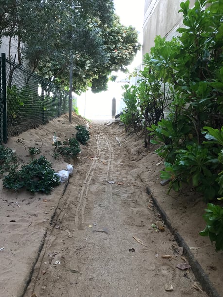 ハレクラニとリーフホテルの間の道にこんなに砂が。