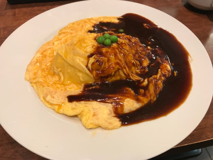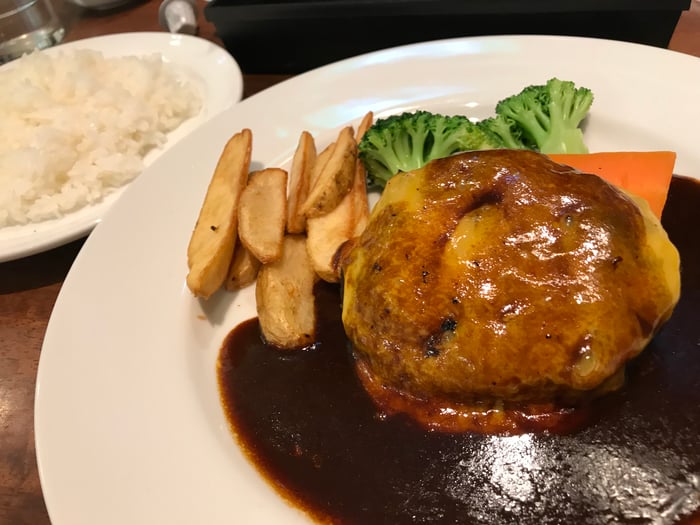 洋食屋のオムライスとチーズハンバーグ。