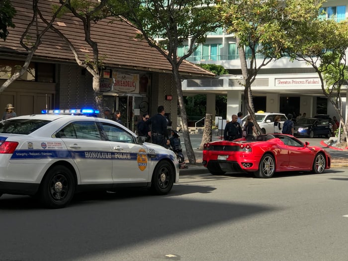 カラカウア通りをものすごいスピードと爆音で走って来たフェラーリ。