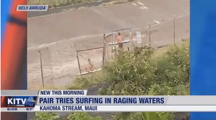 マウイの増水したKahoma Streamで