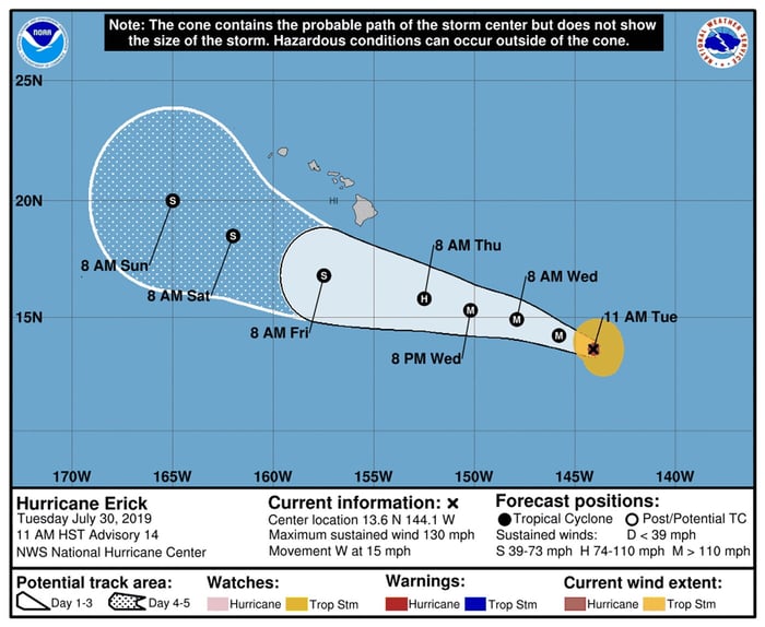 木曜日の夜から朝にかけてビッグアイランドに近づきそうです。