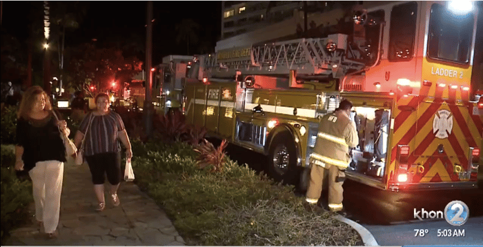昨晩は今度はヒルトングランドワイキキアンで放火事件 (@@)