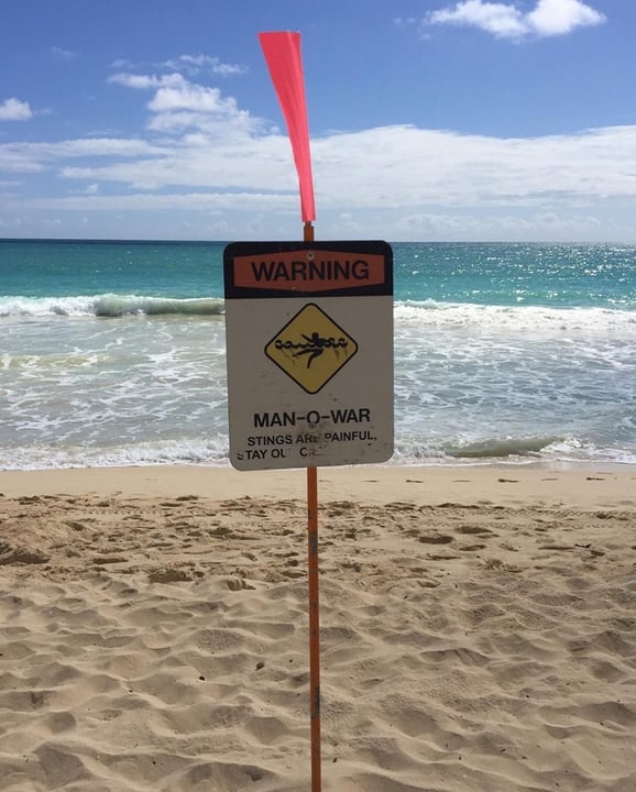 ライフガードによって大量のPortuguese Man O' War(かつおのえぼし)が報告され