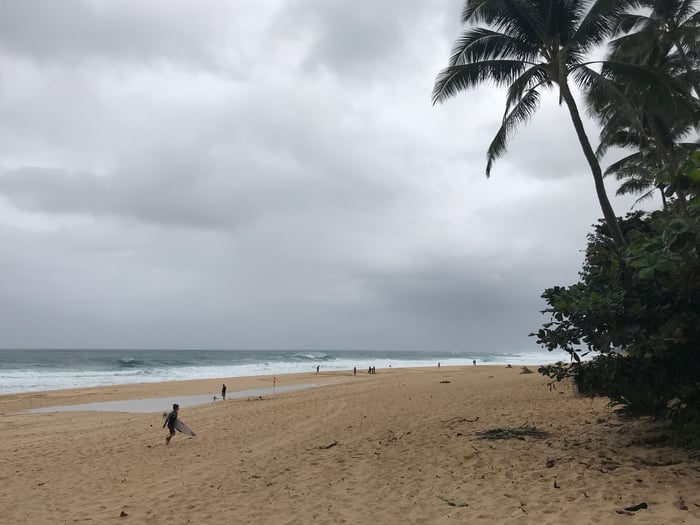 朝の雨も上がって、ハレイワは頭ぐらい。