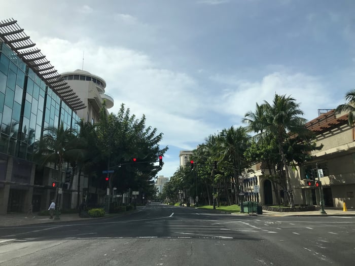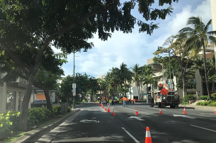 この外出禁止令の間にカラカウア通りの工事やってます。