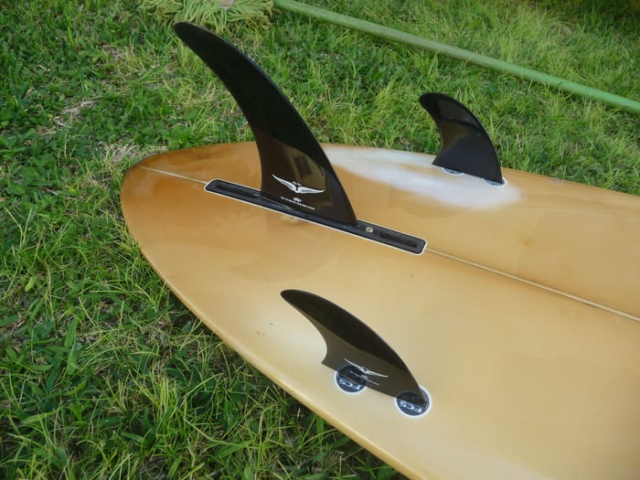 また、Glass on thruster finsを外してボックスにしてあります。