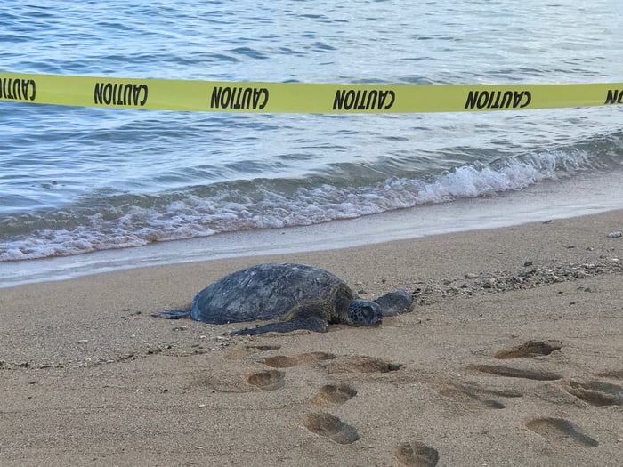 今朝もHONUがビーチでゆっくり寝ていました。