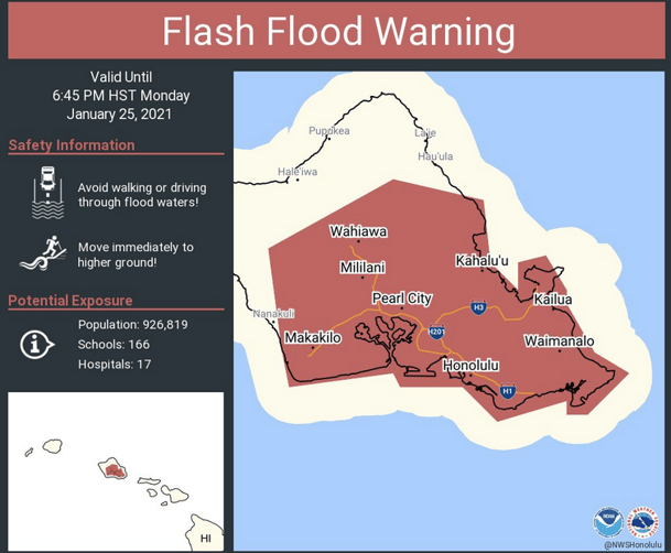 オアフ島にもFlash Flood Warningが発令。