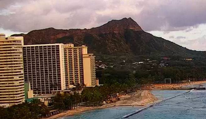 サンセットタイムのワイキキ一望。