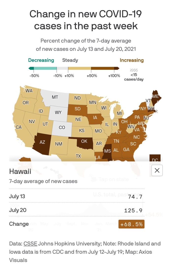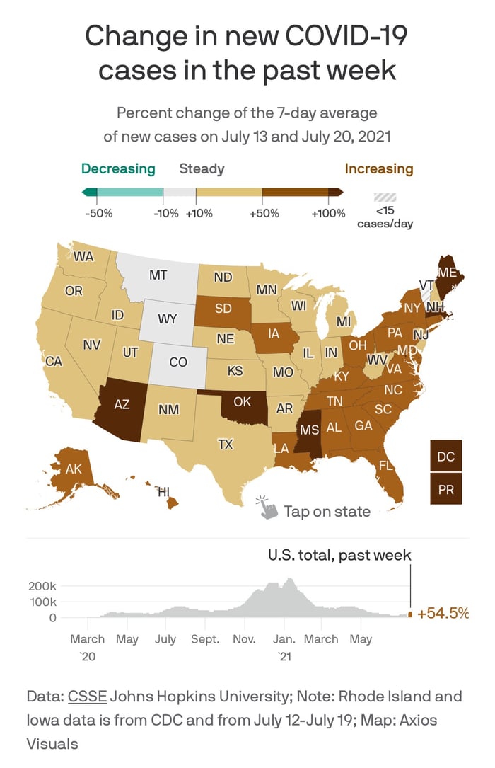 このマップによれば、前の週よりも新規感染者が減っている州はありませんね。