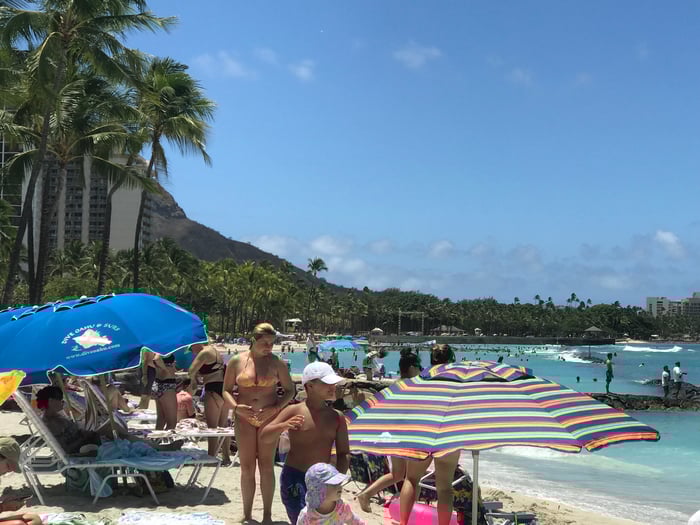 ワイキキビーチは観光客でいっぱいです。