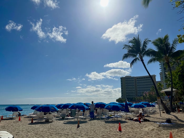 今日のワイキキもパラソルの花が満開です (^ ^)