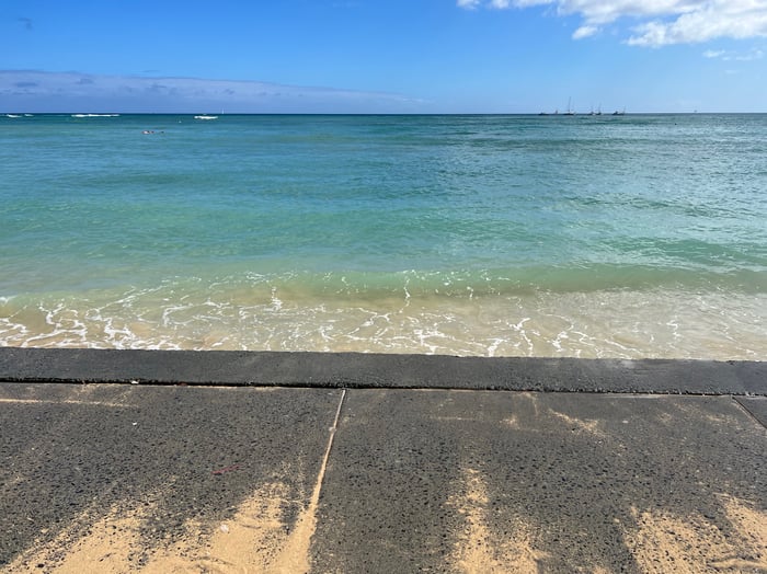 午後のハイタイド時には、ビーチはすっかり無くなって