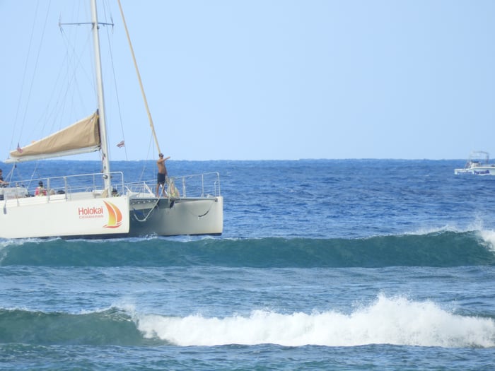 カタマランやボートが6~7艘もアウトに出てます。