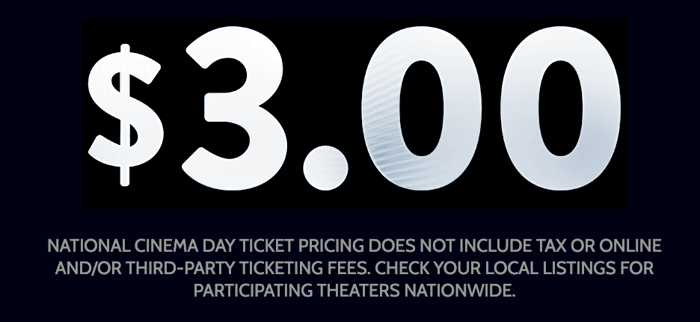 全米の映画館で映画が$3で観られます。