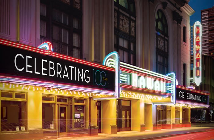 ハワイシアター前は人気の撮影スポットでもあります (^ ^)