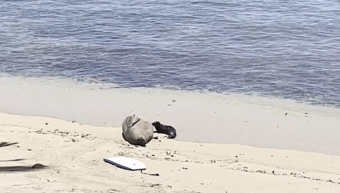 以前、旅行者がハワイアンモンクシールの親子に