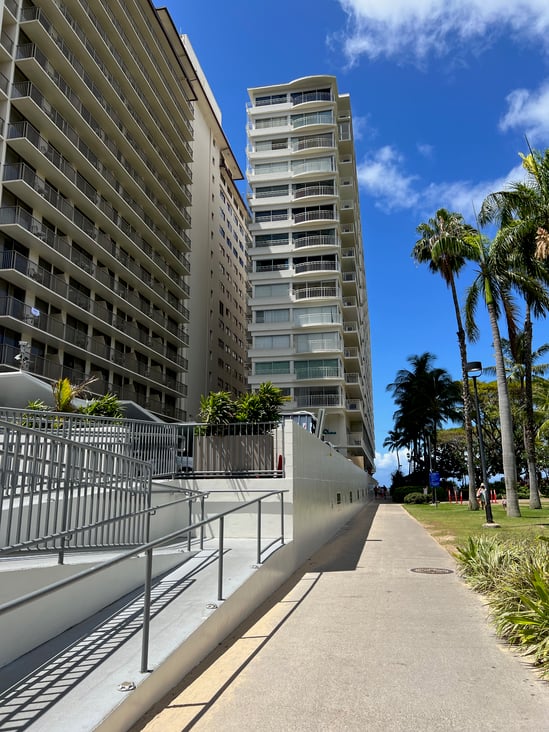 ワイキキショア横のサイドウォークを
