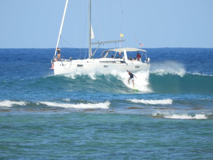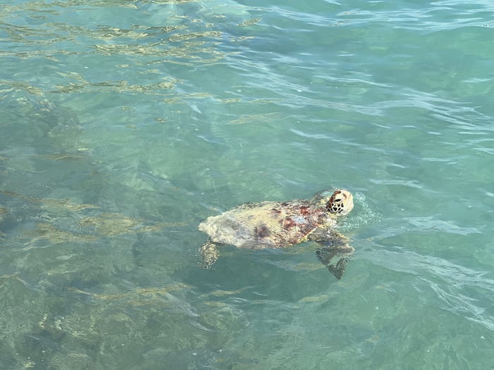 Honuの親子がビーチのすぐ側まで来てました。