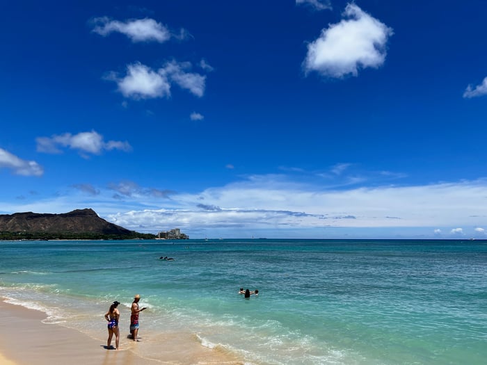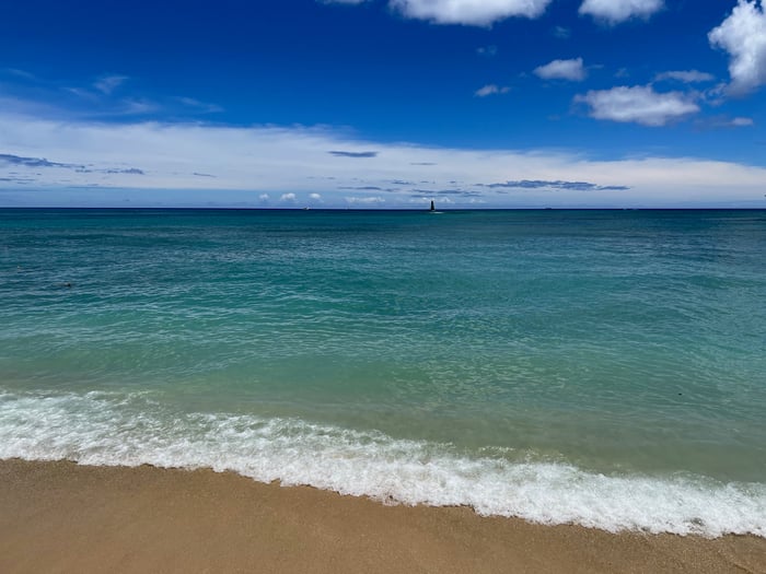 午後のビーチはブルーで眩しい