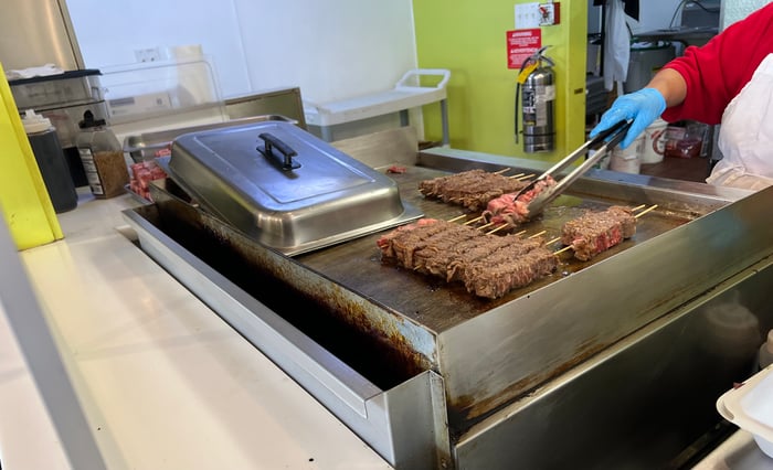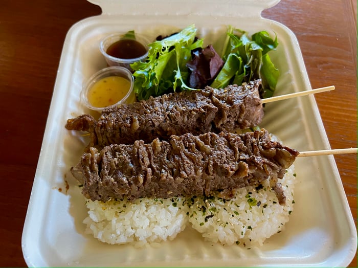 薄い牛肉を重ねて四角いスティック状にした和牛串