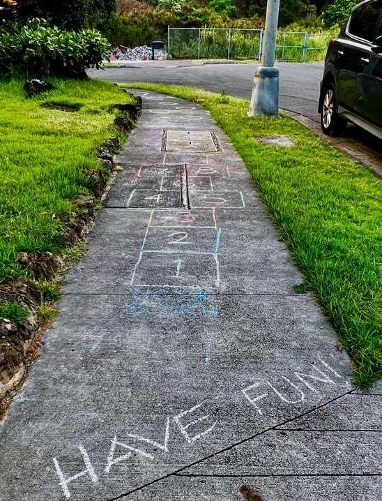 Have Funで始まるチョークで書いた"ケンケンパ"