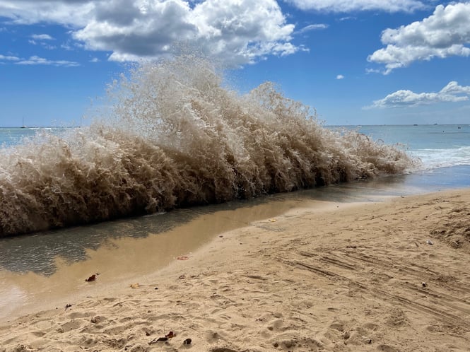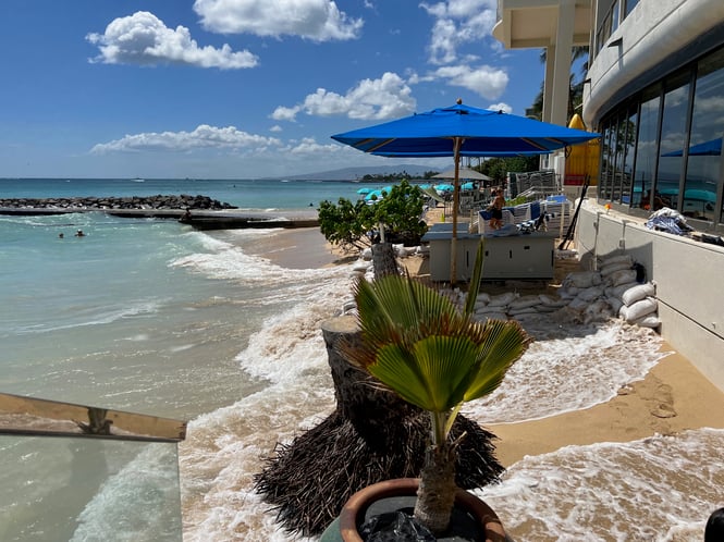 午後はもうビーチは水浸し。